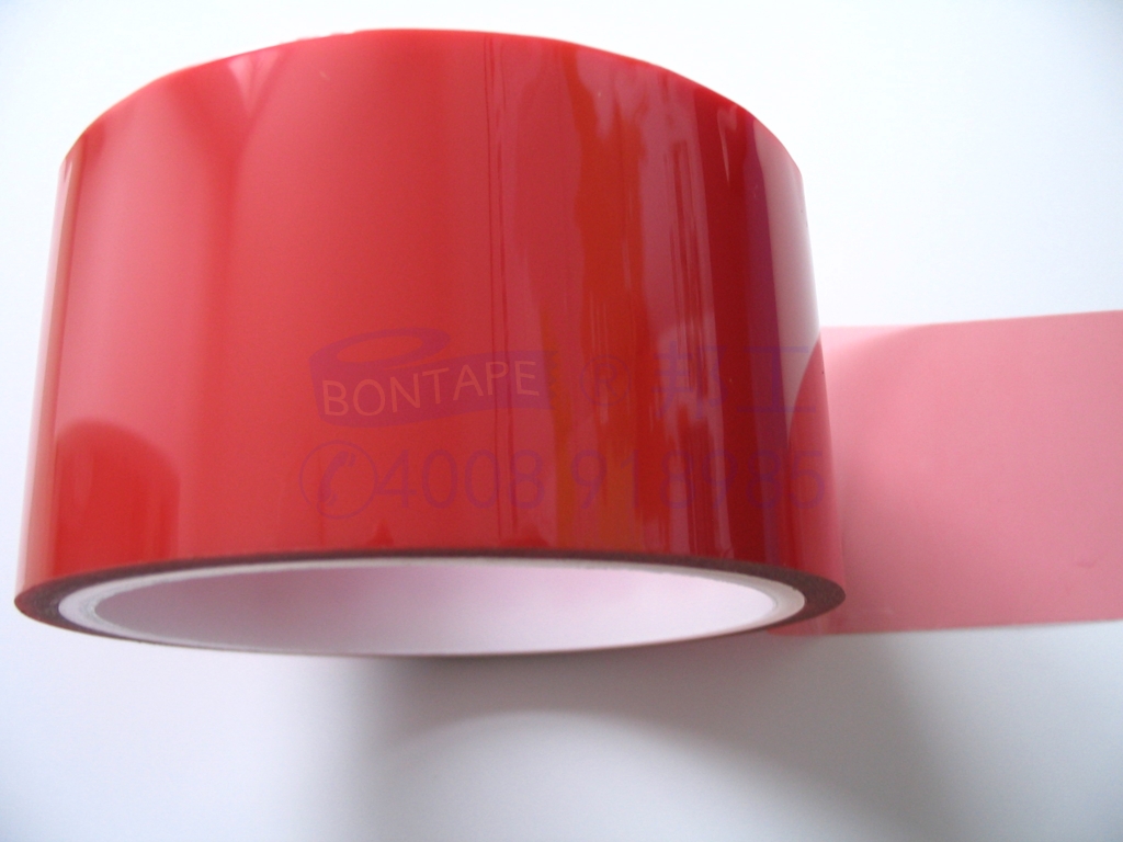 带离型膜红色拼接胶带,为透明红色胶带,具有粘性强、抗剪切性能好、耐高温、耐溶剂等特性,将离型膜、防粘膜、硅油纸拼接后,在高温高速操作下不易断裂,使用后撕下不留残胶。红色拼接胶带的离型膜在用于双面胶带的衬纸或人造革加工的衬纸拼接时,能承受离型作用。