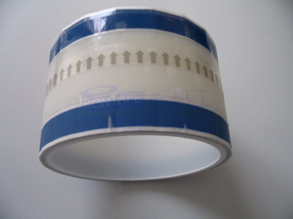 预切胶带,又称 estape,是一种新型专利横向开启胶带。Estape 具有彩色(红、黄、蓝、绿和白)尖 端,长度约为 15 毫米,彩色尖 端不粘,位于贴纸的起始处。不粘的彩色尖 端易于用手捏住。其余部分是透明的,粘度适中。预切胶带在捏住彩色部分后非常容易撕开和粘贴。同样,客户可以方便地打开用 estape 密封的包装。(找到不粘的彩色部分并撕下)。